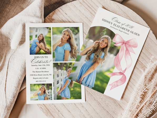 Pink Bow Graduation Photo Card